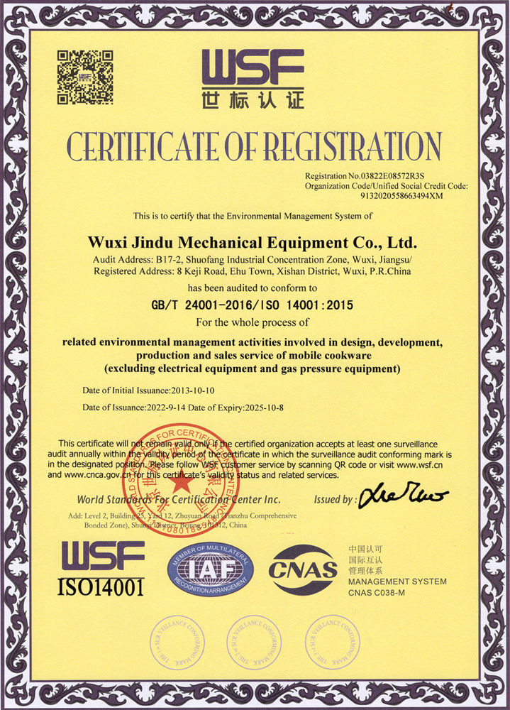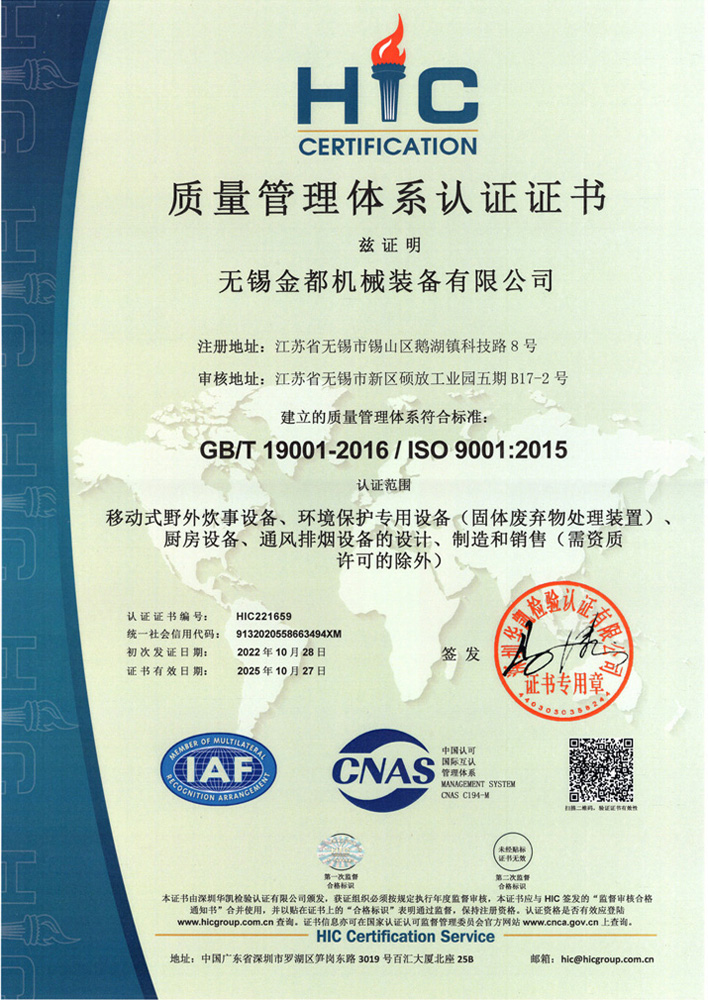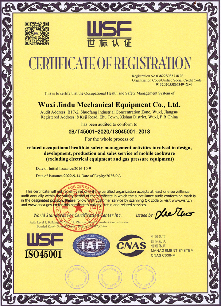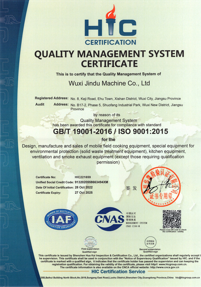 Wuxi Jindu Machine Co., Ltd. is located in Wuxi, Jiangsu, China. Founded in 1991, it is a kitchen company that integrates research and development, production, and sales manufacturing enterprises. Our products are popular in many countries and regions such as Europe, America, Southeast Asia, Middle East, and Africa. We have a production plant of 100,000 square meters, specializing in the production of various cooking machinery and supporting stainless steel products. Including: commercial stoves, combustion systems, Steam generation system, smoke exhaust and ventilation system, conditioning equipment, and various stainless steel durable thick bottomed pots (containers), etc. Over the years, we have continuously focused on developing new technologies, introducing advanced processing equipment, strengthening product quality control, and relying on the advantages of customized development and comprehensive after-sales service to win the trust of customers at home and abroad. Our company will take honesty and pragmatism as our business philosophy, strive to meet the needs of customers from different countries and regions, and jointly explore the path of development.