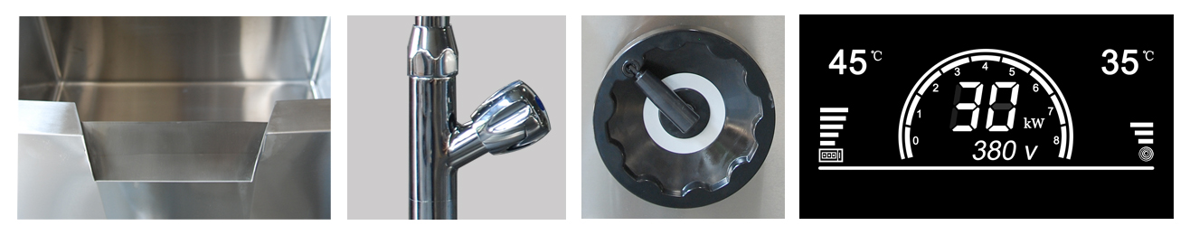 △ 电磁加热,热效率高 △ 清洁无明火,无燃料污染 △ 防干烧、过热及电流/电压异常等保护 △ 可倾式大容量锅体 △ 支持锅体容积、加热功率定制 | △ Induction heating, high thermal efficiency △ No flame, no risk of fire hazards or pollution from fuel △ Protections:Dry burning, overheating, abnormal current/voltage, etc. △ Tilting-type large capacity cauldron △ Support customization: cauldron volume, heating power |
