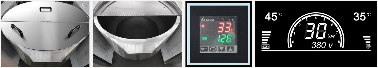 △ 自动操作,自动注水和注油 △ 自动操作,自动注水和注油 △ 手动操作,满足个性化操作需求 △ 保护:干烧、过热、电流/电压异常等 △ 热效率高:热效率≥96% △ 支持锅体容积、加热功率定制 | △ Auto-operation, auto water and edible oil injection △ Built in food menu, and easy to edit youself △ Manual operation to meet personalized operational needs △ Protections:Dry burning, overheating, abnormal current/voltage, etc. △ High Thermal Efficiency:Thermal efficiency≥96% △ Support customization: cauldron volume, heating power |